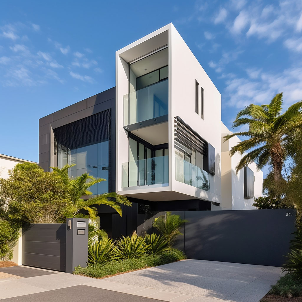 The project site is relatively compact. In order to break the traditional architectural forms that are uniform along the street, we split the building form into two parts, placing the garage entrance on the east side of the site to form a dark column. The residential area is planned on the west side with better landscape, and the contrast of the color blocks on the left and right forms a simple and modern architectural form that is easy to identify.