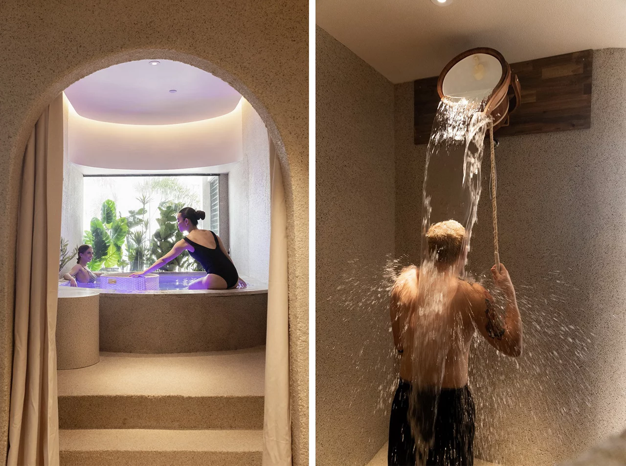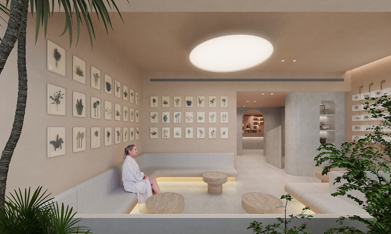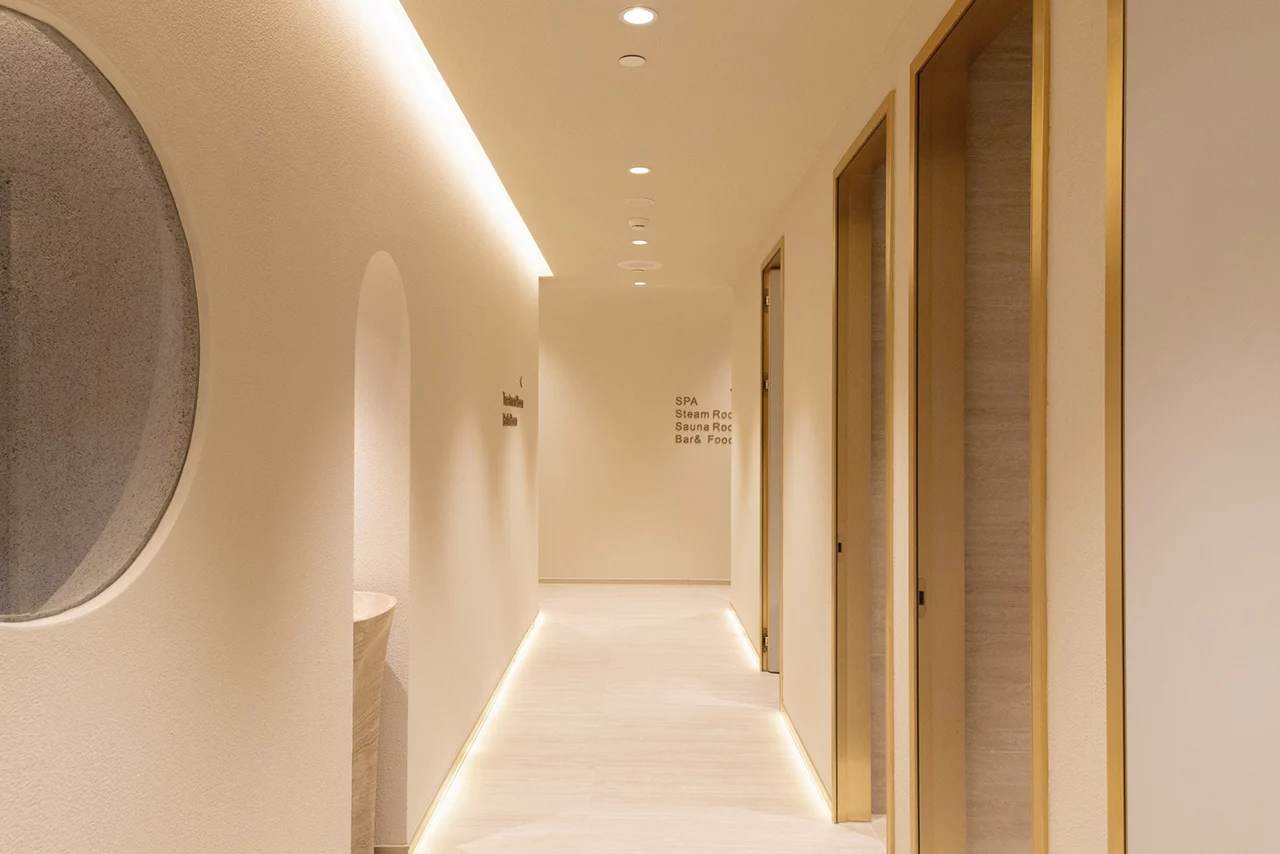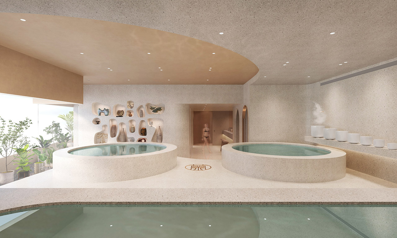 Lan Bathhouse is a healing-themed SPA space designed to provide guests with a comprehensive experience of relaxation and physical and mental restoration. Drawing inspiration from nature and tranquility, it emphasizes the fusion of aromatherapy, hydrotherapy, and leisure elements. The space spans an assumed total area of 420㎡, featuring soft lighting, natural materials, and gentle tones to create a warm, healing atmosphere. Aromatherapy is integrated into the interior, with essential oil diffusers at the entrance, enhancing the sensory experience through soft music, gentle lighting, and tactile elements. The separation of dry and wet zones ensures a rational flow for guests, meeting the needs of different functional areas while maintaining smooth circulation, hygiene, and comfort. The dry-wet flow is central to the SPA’s design, preventing moisture from spreading to dry areas, reducing the risk of slips or bacterial growth, and ensuring a seamless, natural transition for guests. The layout follows a “linear layering” model: entering the dry zone from the entrance, progressing to the wet zone, and returning to the dry zone for exit. The open indoor area incorporates natural light and ventilation, surrounded by lush greenery on an outdoor terrace, perfectly blending nature and healing to create a SPA space that integrates functionality, aesthetics, and an immersive experience.